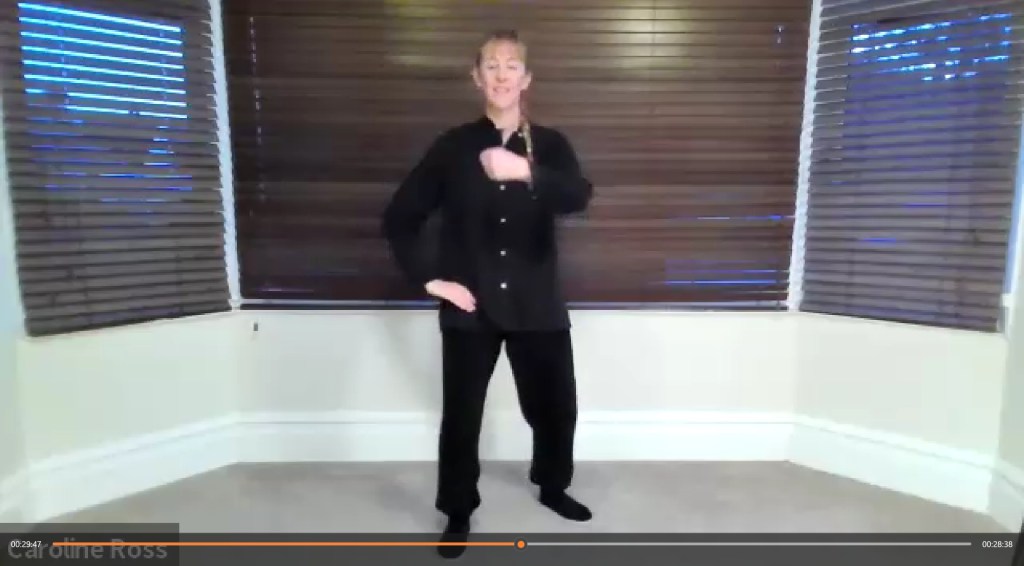 Class links are sent at noon on Monday, before each session. So, get out your loose comfortable clothing, your slippers or thick socks and clear away your furniture. You’ll need the minimum space of enough room to swing your arms out around you as wide as they go without hitting anything, in all directions. As a guide, you can manage a Short Form with adjustment steps in the space taken up by a double bed but a bit more space is better.